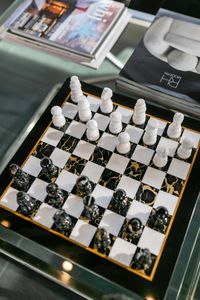 Chess Board - Crafted by Hand with Precious Portoro Marble and Statuario Marble Imported from Italy