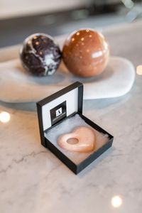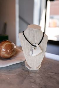 Note: "Each heart is sculpted from natural stone. Its veins, shapes, cracks and forms are considered part of the design, as all stone is a product of the land."